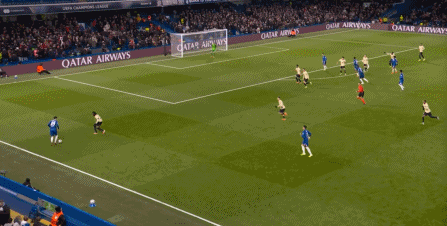 所以在攻守形势并未逆转的情况下,下半场的切尔西依旧占据着优势,可利用的空间随着人数优势显现: